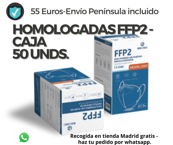 Mascarilla FFP2 con certificación CE/2163 - EN 149:2001+A1:2009 FFP2 NR.